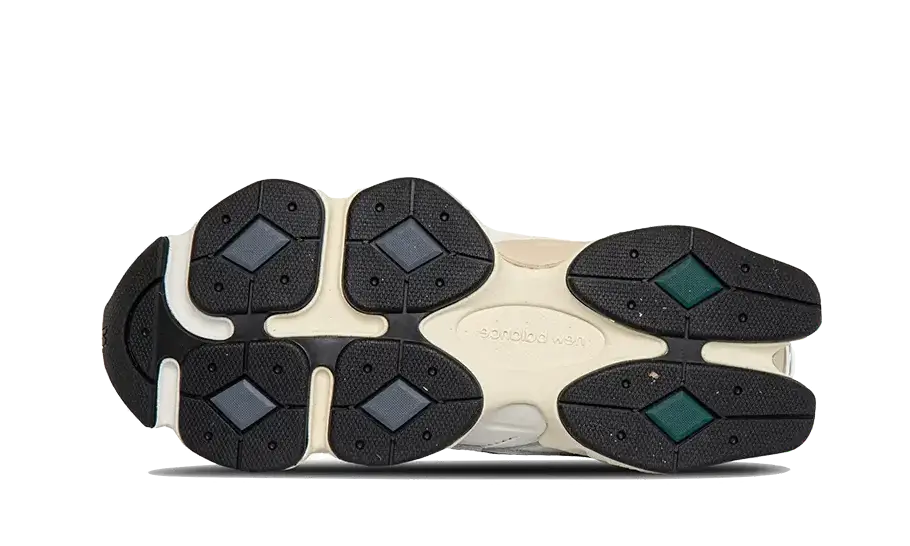 Drawing inspiration from classic models in the 99X series, the New Spruce version of the New Balance 9060 showcases the visible tech aesthetic of the early 2000s. For instance, the ABZORB midsole boasts exaggerated sculpted pods that complement the wavy, layered overlays on the upper. The upper is crafted from suede and mesh in Sea Salt, while gray accents stand out on the tongue, heel, and side panels. Although New Spruce saturates the "N" on the outer side panel, stripes of New Spruce cover the "N" on the inner side. The "NB 9060" branding on the tongue and the "NB" stitched on the heel also come in New Spruce.