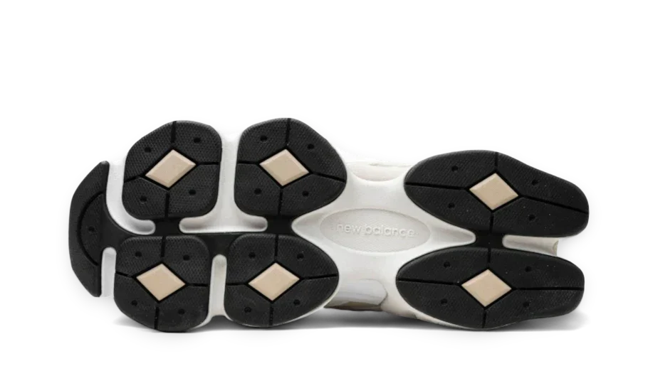 The Turtledove colorway of the New Balance 9060 begins with an upper base of lightweight, breathable ivory mesh. Suede and soft leather overlays in gradient shades from creamy white to tan ripple across the upper in wavy strips, calling to mind a feeling of motion. A translucent CR device at the heel helps add to foot stability, while the white lace closure over the ivory tongue provides a secure fit with every step. The side panel N is stitched on to the outer side and embroidered on the inner.